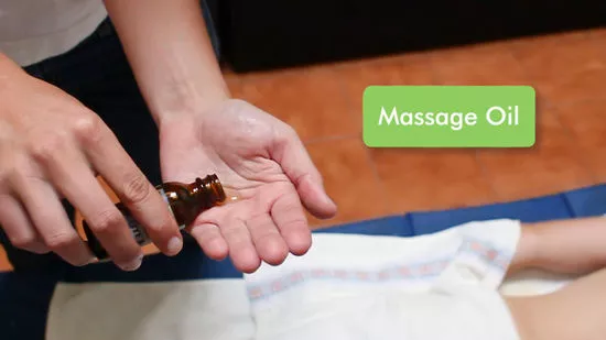 2. Vierte el aceite de masaje en la palma de tu mano.